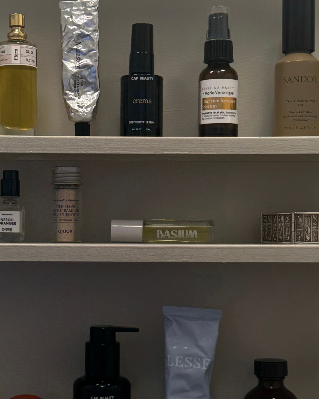 I keep a few brands in rotation. Ffern makes beautiful limited-edition scents and candles that feel like a treasure to unbox. Abel is another favorite, especially Black Anise and Green Cedar. I admire Frances, the Founders of Abel’s practice and how she for so long has stood behind natural scents before everyone else – a true pioneer if you ask me. I also love Basium’s little roll-on essential oils. They’re easy to keep in my bag for a quick refresh. Constanze, Basium’s founder, and I started our brands at the same time, right alongside our friendship.